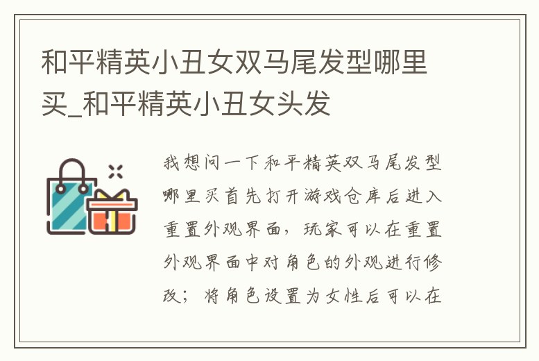 我想問一下和平精英雙馬尾發型哪里買首先打開游戲倉庫后進入重置外觀界面,玩家可以在重置外觀界面中對角色的外觀進行修改;將角色設置為女性后可以在發型選項的最后一項看到雙馬尾發型,還可以在發型選項下方選擇發型的顏色;設置好雙馬尾發型后點擊【保存。1、pubg小丑女