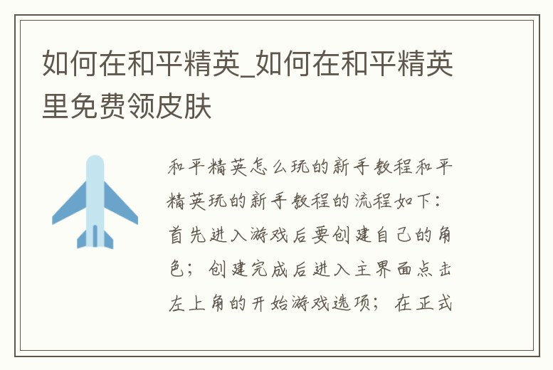 如何在和平精英_如何在和平精英里免費領(lǐng)皮膚