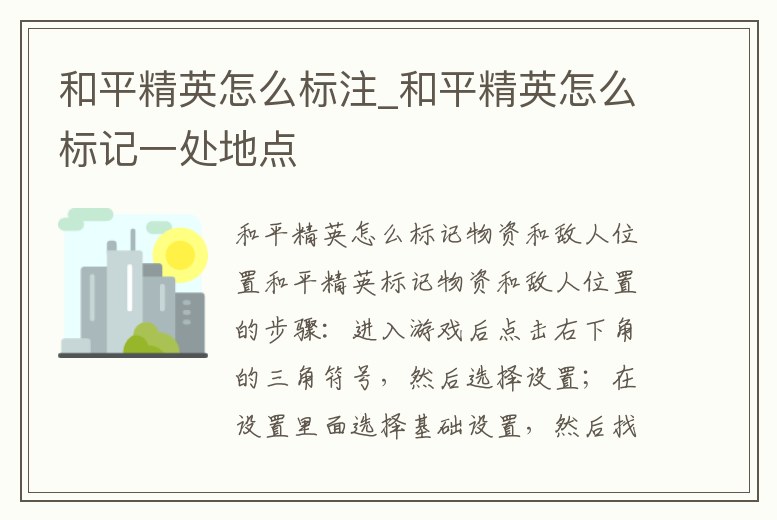 - 和平精英怎么標(biāo)注_和平精英怎么標(biāo)記一處地點(diǎn)