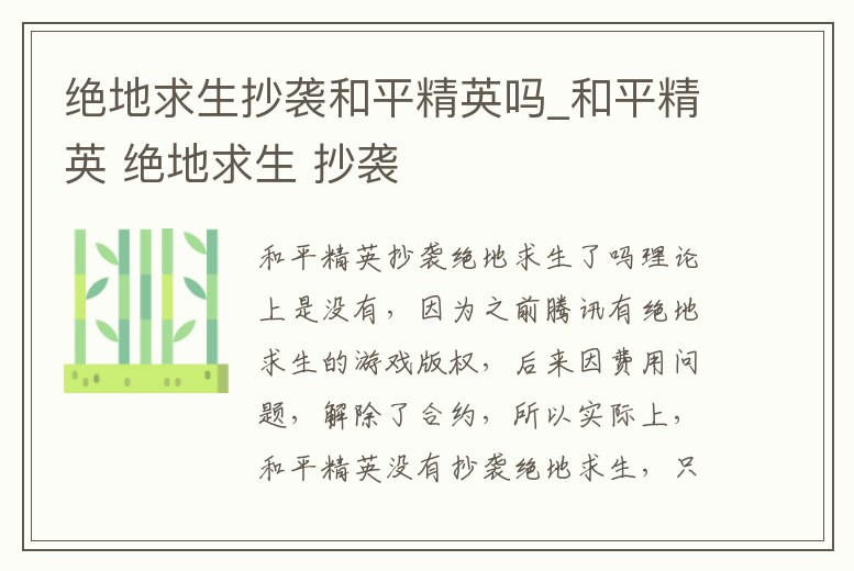 理論上是沒有,因為之前騰訊有絕地求生的游戲版權,后來因費用問題,解除了合約,所以實際上,和平精英沒有抄襲絕地求生,只能說是一類游戲,有點借鑒而已 。