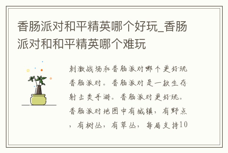 香腸派對和平精英哪個好玩_香腸派對和和平精英哪個難玩