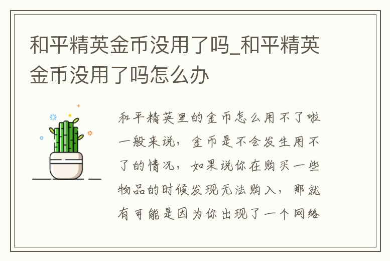 和平精英金幣沒用了嗎_和平精英金幣沒用了嗎怎么辦
