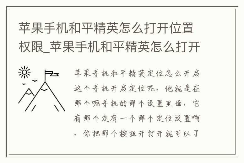 蘋果手機和平精英怎么打開位置權限_蘋果手機和平精英怎么打開位置權限管理
