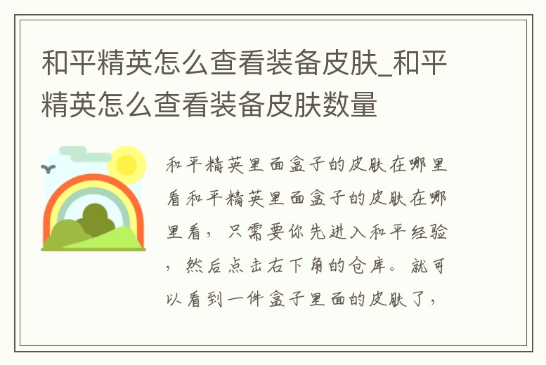 和平精英怎么查看裝備皮膚_和平精英怎么查看裝備皮膚數量