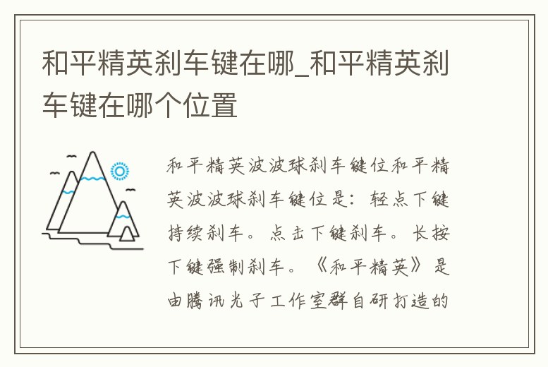 和平精英剎車鍵在哪_和平精英剎車鍵在哪個位置