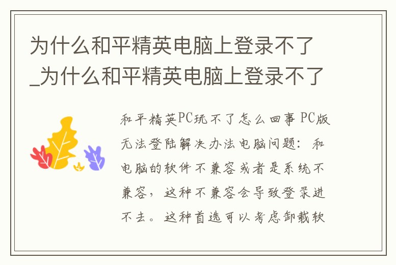 為什么和平精英電腦上登錄不了_為什么和平精英電腦上登錄不了微信