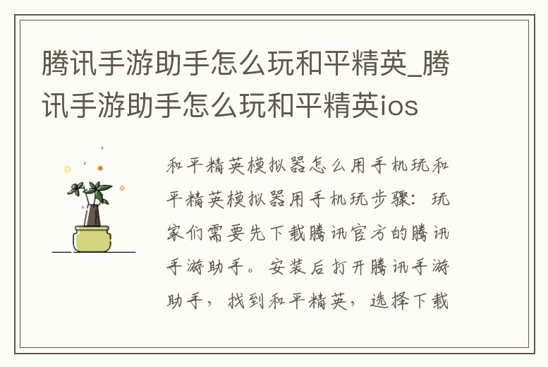 - 騰訊手游助手怎么玩和平精英_騰訊手游助手怎么玩和平精英ios