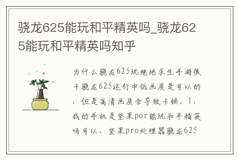 驍龍625能玩和平精英嗎_驍龍625能玩和平精英嗎知乎