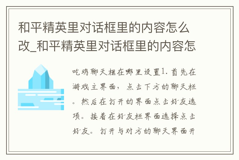 和平精英里對話框里的內容怎么改_和平精英里對話框里的內容怎么改掉
