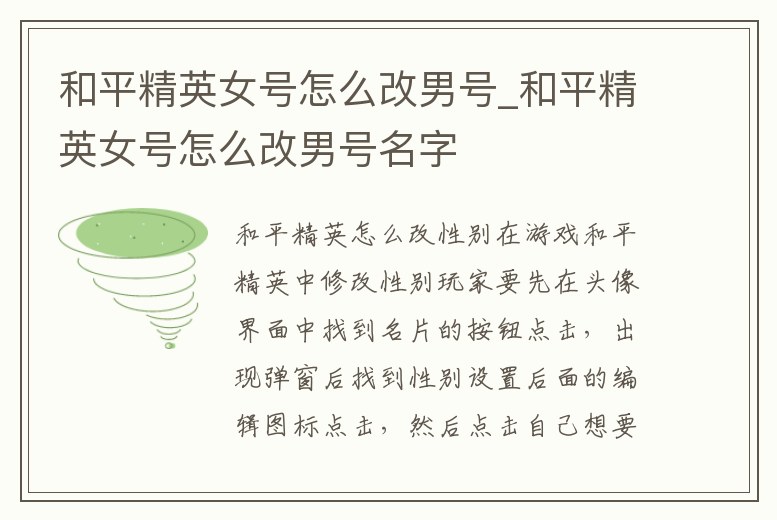 - 和平精英女號怎么改男號_和平精英女號怎么改男號名字
