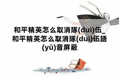 - 和平精英怎么取消隊(duì)伍_和平精英怎么取消隊(duì)伍語(yǔ)音屏蔽