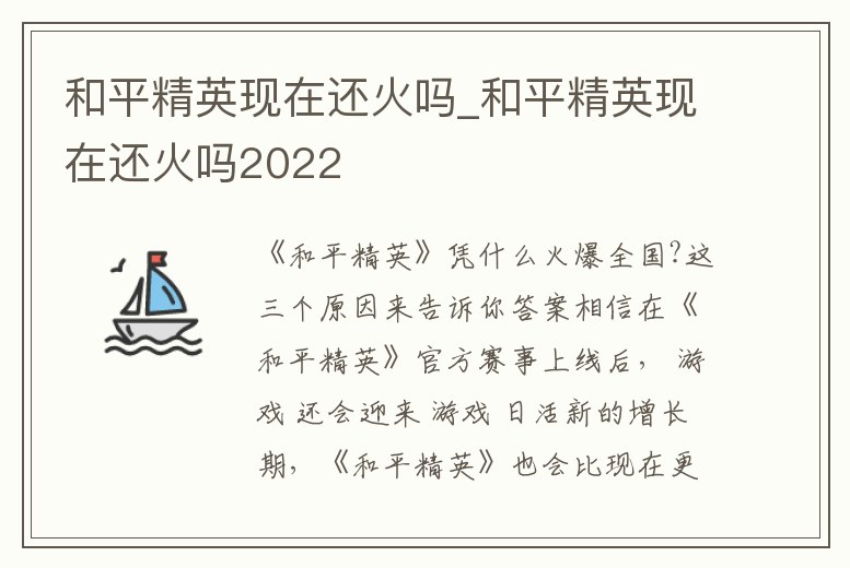 - 和平精英現(xiàn)在還火嗎_和平精英現(xiàn)在還火嗎2022