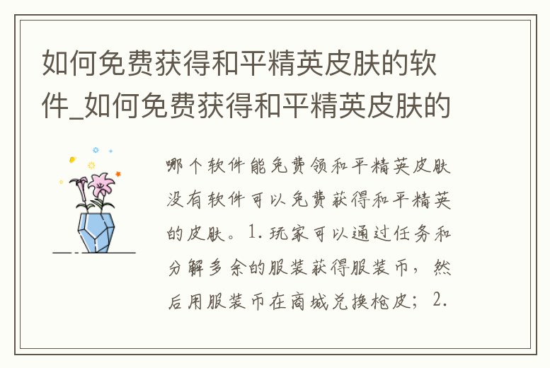 - 如何免費(fèi)獲得和平精英皮膚的軟件_如何免費(fèi)獲得和平精英皮膚的軟件游戲
