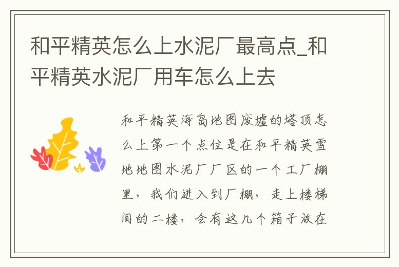 和平精英怎么上水泥廠最高點_和平精英水泥廠用車怎么上去