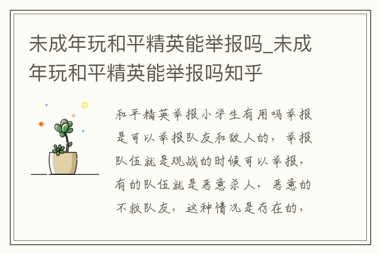 - 未成年玩和平精英能舉報(bào)嗎_未成年玩和平精英能舉報(bào)嗎知乎