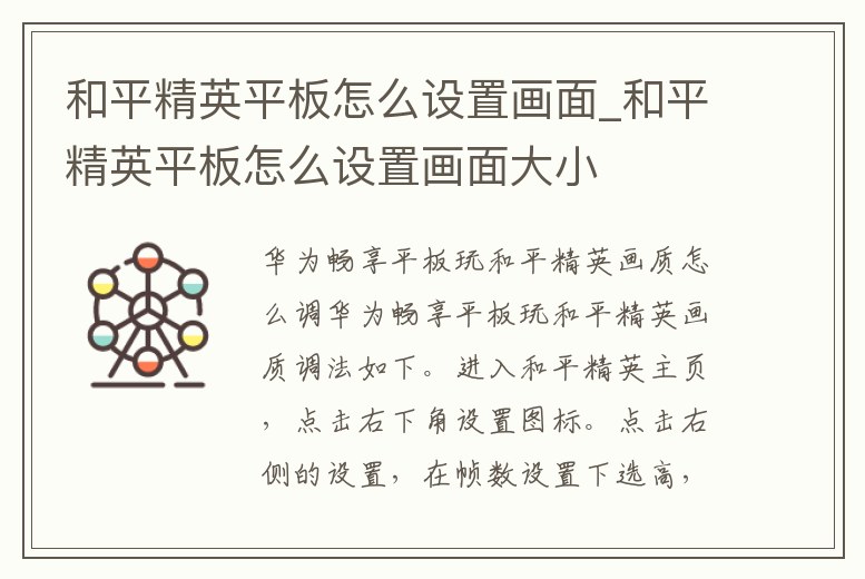 和平精英平板怎么設置畫面_和平精英平板怎么設置畫面大小