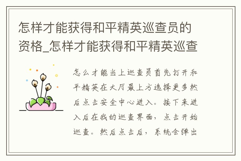 - 怎樣才能獲得和平精英巡查員的資格_怎樣才能獲得和平精英巡查員的資格呢