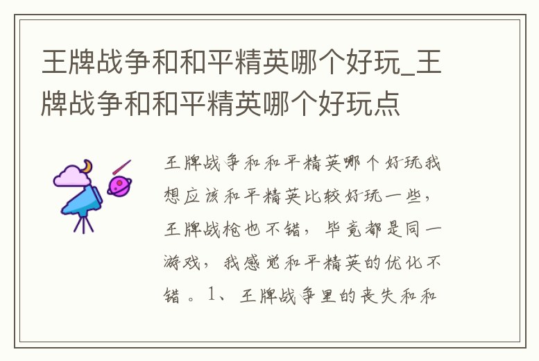 王牌戰爭和和平精英哪個好玩_王牌戰爭和和平精英哪個好玩點