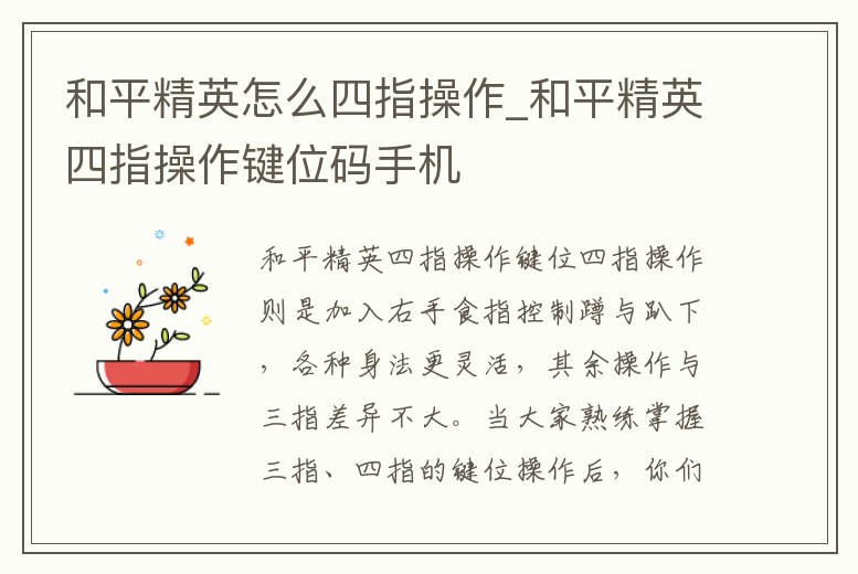 和平精英怎么四指操作_和平精英四指操作鍵位碼手機