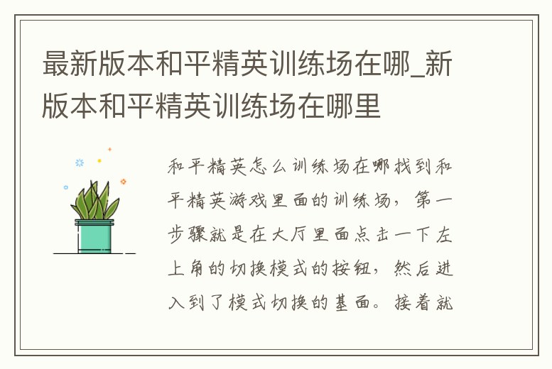 最新版本和平精英訓練場在哪_新版本和平精英訓練場在哪里