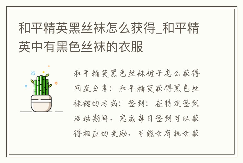和平精英黑絲襪怎么獲得_和平精英中有黑色絲襪的衣服