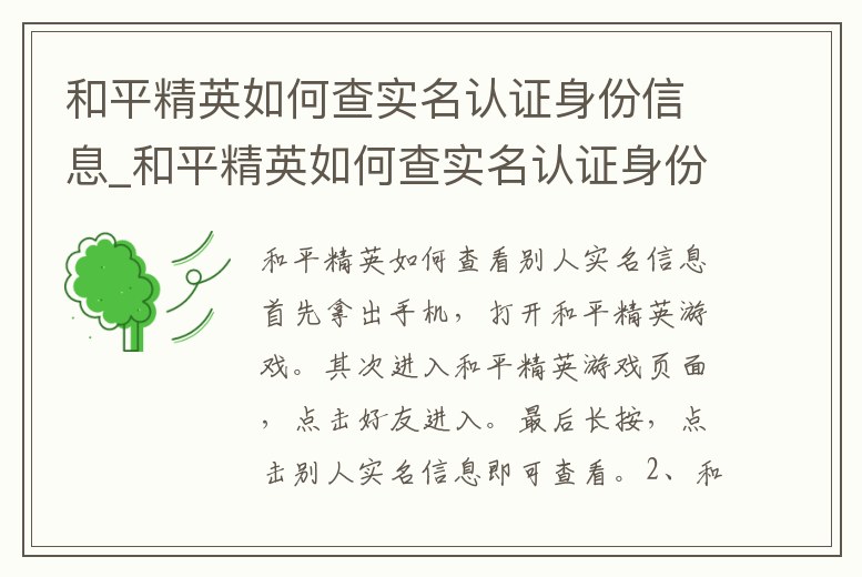 和平精英如何查實名認證身份信息_和平精英如何查實名認證身份信息是否正確