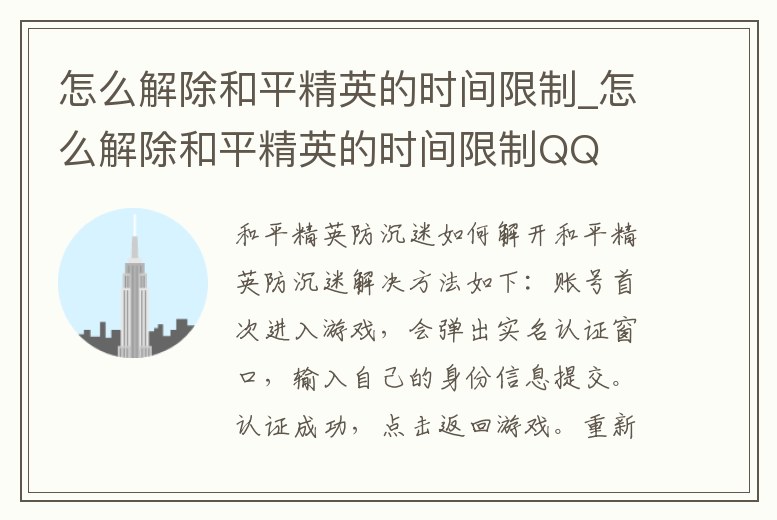怎么解除和平精英的時間限制_怎么解除和平精英的時間限制QQ