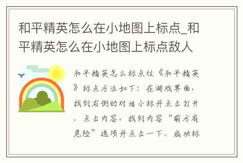 - 和平精英怎么在小地圖上標(biāo)點(diǎn)_和平精英怎么在小地圖上標(biāo)點(diǎn)敵人