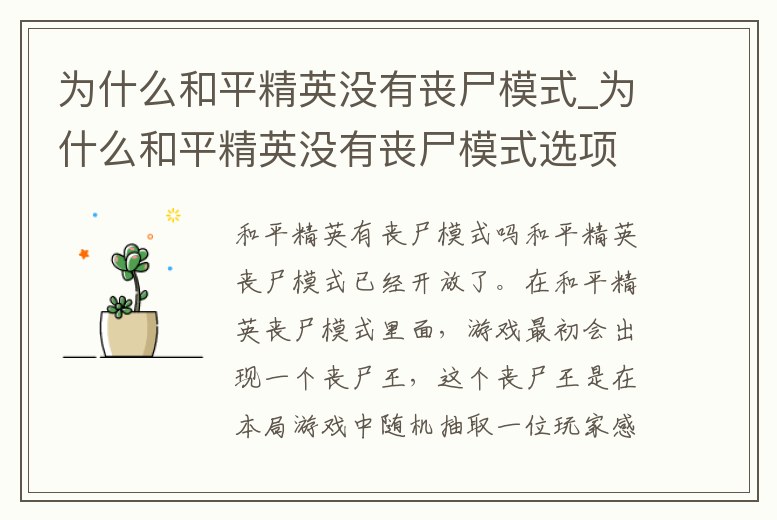 為什么和平精英沒有喪尸模式_為什么和平精英沒有喪尸模式選項