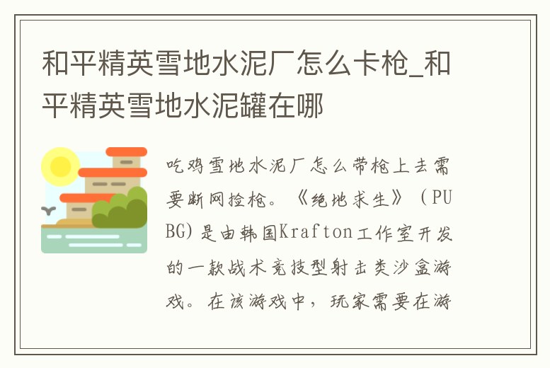 和平精英雪地水泥廠怎么卡槍_和平精英雪地水泥罐在哪
