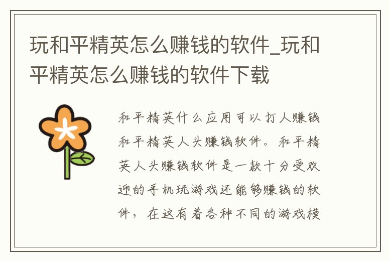 玩和平精英怎么賺錢的軟件_玩和平精英怎么賺錢的軟件下載