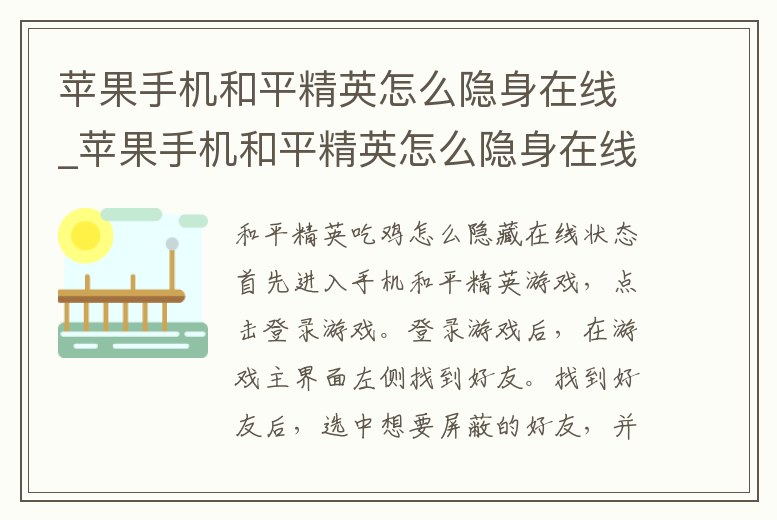 - 蘋果手機(jī)和平精英怎么隱身在線_蘋果手機(jī)和平精英怎么隱身在線狀態(tài)