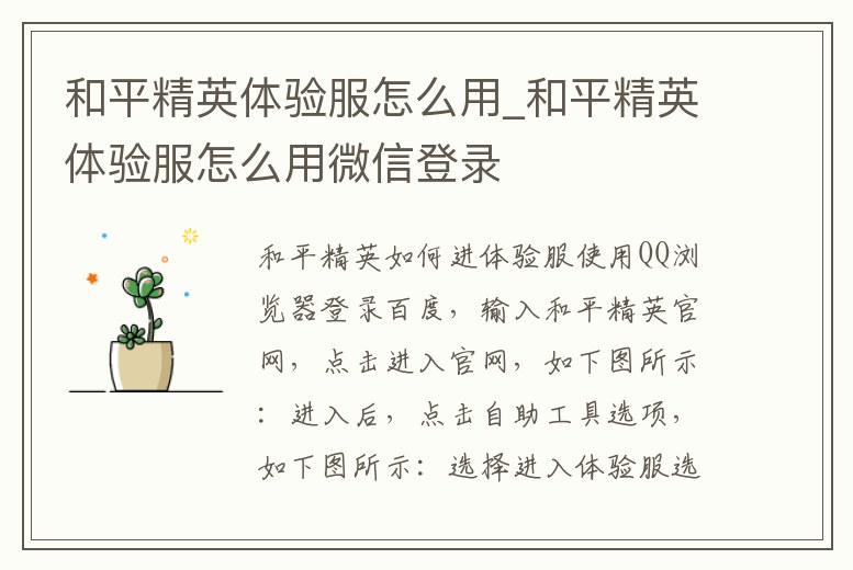 和平精英體驗服怎么用_和平精英體驗服怎么用微信登錄