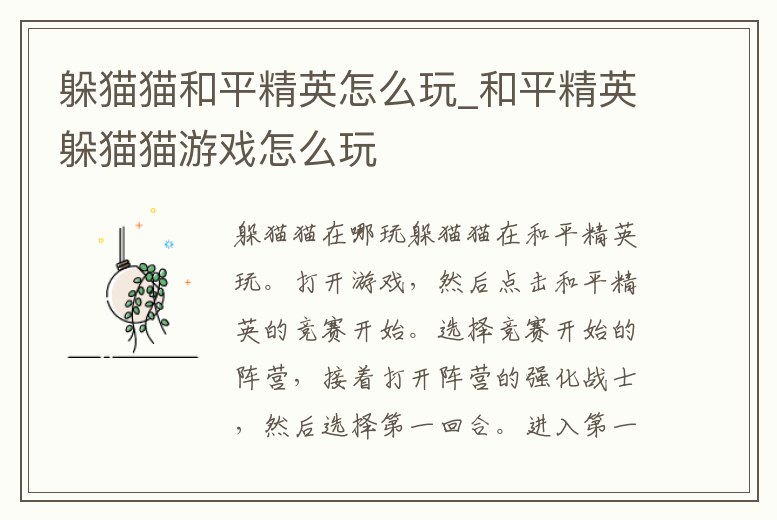 - 躲貓貓和平精英怎么玩_和平精英躲貓貓游戲怎么玩