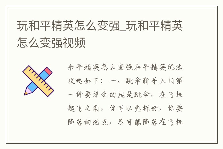玩和平精英怎么變強_玩和平精英怎么變強視頻