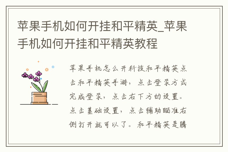 蘋果手機如何開掛和平精英_蘋果手機如何開掛和平精英教程