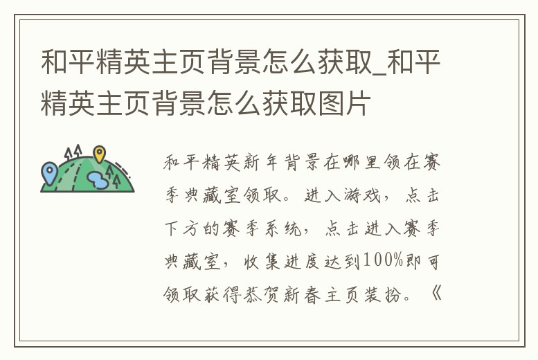 和平精英主頁背景怎么獲取_和平精英主頁背景怎么獲取圖片