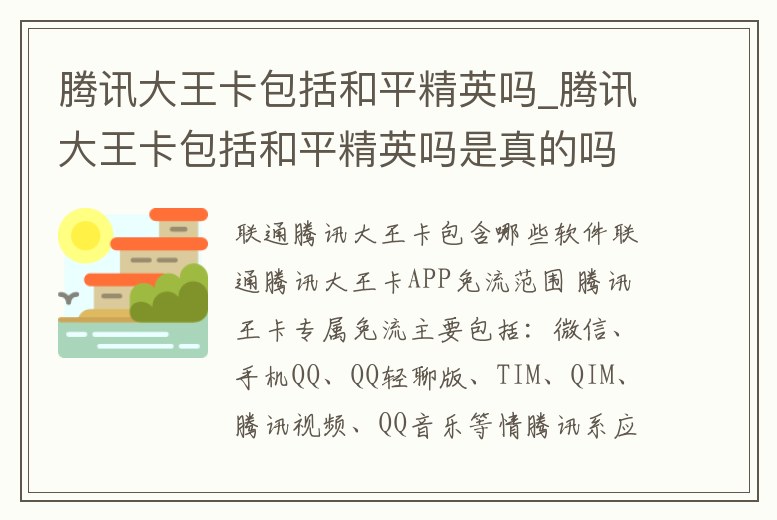 騰訊大王卡包括和平精英嗎_騰訊大王卡包括和平精英嗎是真的嗎