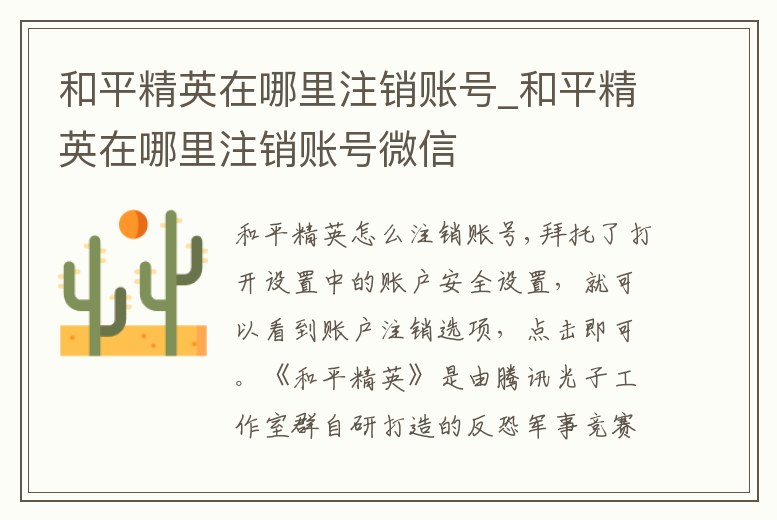 和平精英在哪里注銷賬號_和平精英在哪里注銷賬號微信