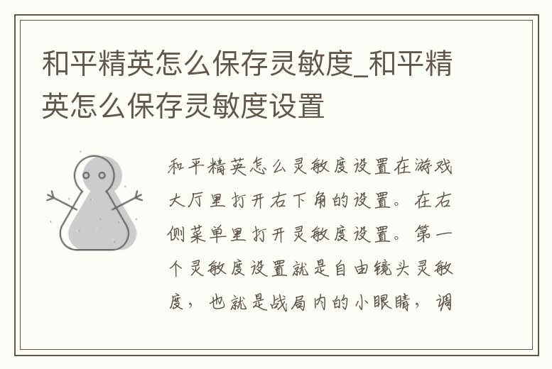 和平精英怎么保存靈敏度_和平精英怎么保存靈敏度設(shè)置