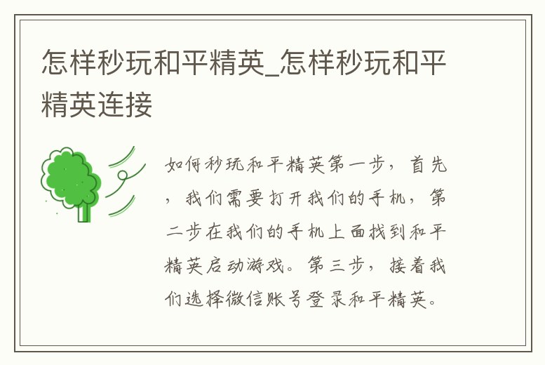 - 怎樣秒玩和平精英_怎樣秒玩和平精英連接