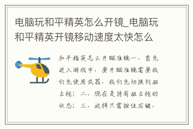 - 電腦玩和平精英怎么開鏡_電腦玩和平精英開鏡移動速度太快怎么調(diào)