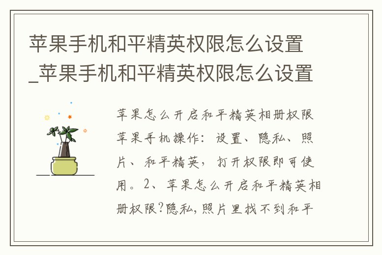 蘋果手機和平精英權限怎么設置_蘋果手機和平精英權限怎么設置的