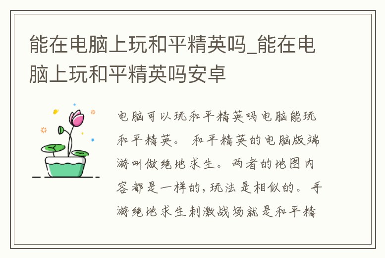 能在電腦上玩和平精英嗎_能在電腦上玩和平精英嗎安卓