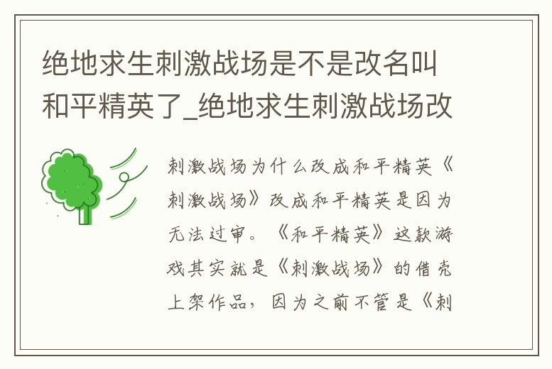 絕地求生刺激戰場是不是改名叫和平精英了_絕地求生刺激戰場改名了嗎