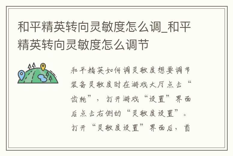 和平精英轉向靈敏度怎么調_和平精英轉向靈敏度怎么調節