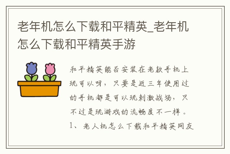 - 老年機(jī)怎么下載和平精英_老年機(jī)怎么下載和平精英手游