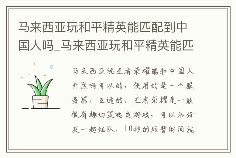 馬來西亞玩和平精英能匹配到中國人嗎_馬來西亞玩和平精英能匹配到中國人嗎