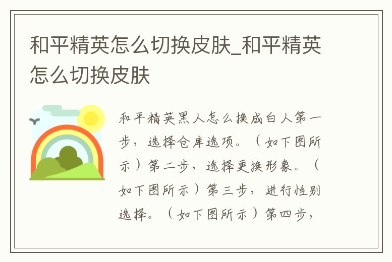 和平精英怎么切換皮膚_和平精英怎么切換皮膚
