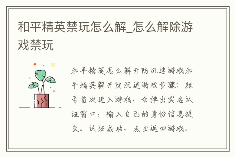 和平精英禁玩怎么解_怎么解除游戲禁玩